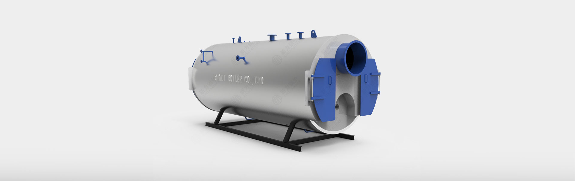 卧式内燃三回程设计结构,大直径波纹炉胆,燃烧空间大,燃料燃烧完全,辐射受热面大,热效高。